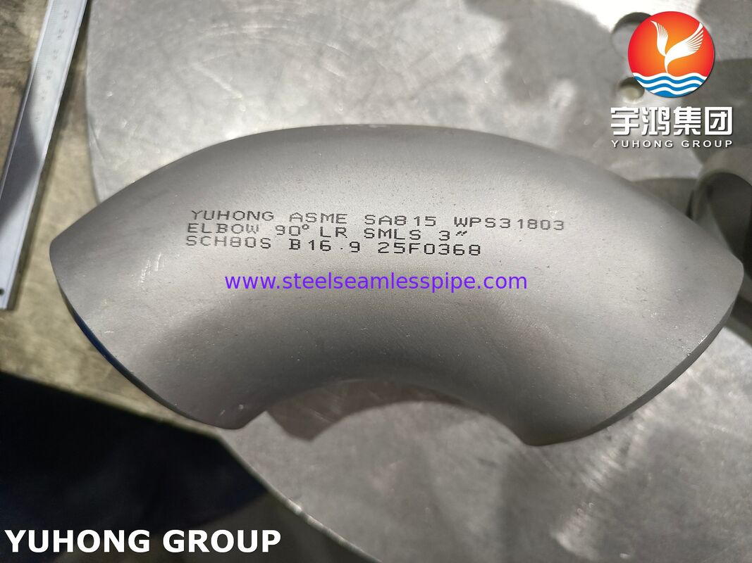 ASME SA815 S31803 Δύοπλεξής χάλυβα ρευστότητα ζυγισμένη με 90Deg αγκώνα για αγωγούς